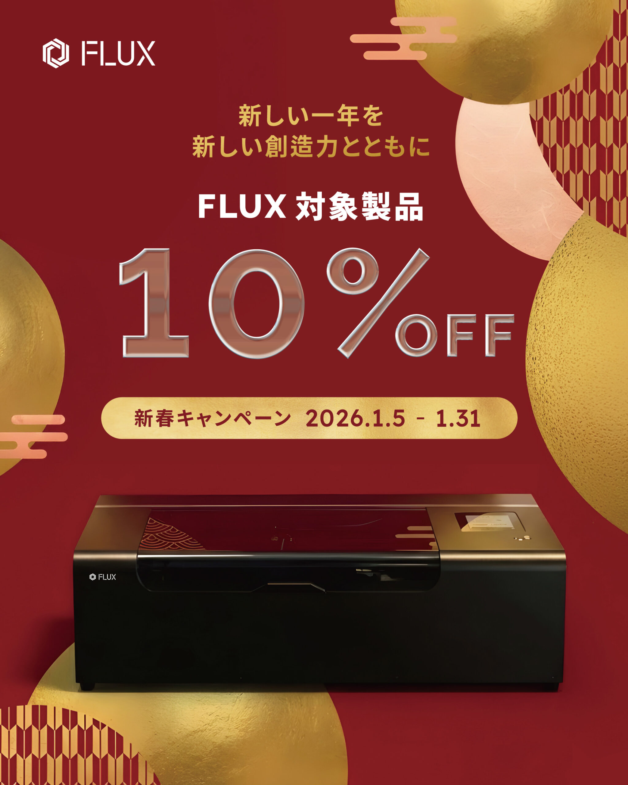 FLUX has launched its 2026 New Year campaign in Japan, offering a 10% discount on its desktop laser...